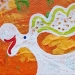 Decembercadeautje, verras jezelf of iemand anders met dit minischilderijtje, 5 bij 7 cm. Acrylverf op katoen, met een ophanghaakje aan de achterkant. November/december 2025; de prijs is inclusief decemberverpakking (rode achtergrond, met gouden sterretjes erop) en verzendkosten binnen Nederland (via Postnl).
