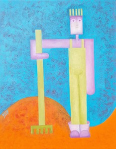 Tuinder met hark, olieverf op linnen, 50 bij 40 cm, geen lijst, Pictoright. De prijs is zonder verzendkosten.