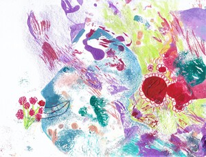 2014Werk op papier; olieverf met kleurpotlood. Dit werk is niet te koop.
