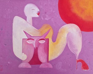 From the series 'She's mine', 40 x 50, oil paint on linen, no frame, Pictoright. When you fall in love with a woman with a pet, yoy have to make a little extra effort. If you sign up for my monthly free newsletter, see bottom left under 'contact', you will receive a 10% discount when purchasing this work. The price does not include shipping costs.