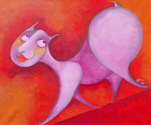 Acrylverf op katoen, 30 bij 40 cm, Pictoright. Als je je aanmeldt voor mijn nieuwsbrief, zie linksonder bij 'contact', krijg je 10% korting bij aanschaf van dit werk. De prijs is zonder verzendkosten. Misschien moeten we voor aanschaf even beeldbellen, want de kleur van de achtergrond is in werkelijkheid niet zo donker.