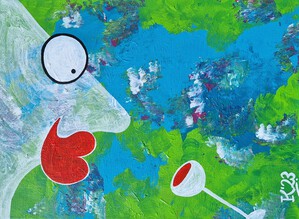 2024Acrylverf op katoen, 10 bij 10 cm, voorzien van haakjes en draad aan de achterkant, zodat je het schilderijtje makkelijk op kunt hangen. Pictoright. De prijs is inclusief verzendkosten binnen Nederland. Als abonnee op mijn maandelijkse nieuwsbrief -zie linksonder bij 'contact'- krijg je bij aanschaf van dit werk 20% korting.