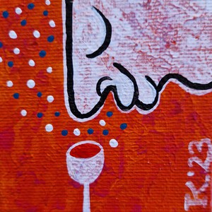 2023Acrylverf op katoen, 10 bij 10 cm, voorzien van haakjes en draad aan de achterkant, zodat je het schilderijtje makkelijk op kunt hangen. Pictoright. Als je je aanmeldt voor mijn nieuwsbrief, zie linksonder bij 'contact', krijg je 10% korting bij aanschaf van dit werk. De prijs is exclusief verzendkosten.
