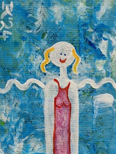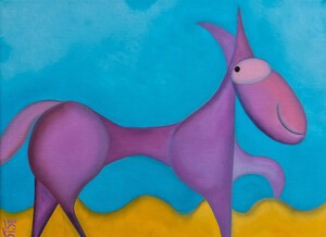 2024Minischilderijtje, 10 bij 7 cm, acrylverf op katoen, met ophanghaakje, Pictoright.