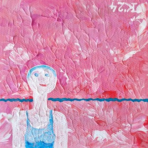 2024Acrylverf op katoen, 10 bij 10 cm, dit werkje kan opgehangen worden, Pictoright. Als je je aanmeldt voor mijn nieuwsbrief, zie linksonder bij 'contact', krijg je 10% korting bij aanschaf van dit werk. De prijs is exclusief verzendkosten.