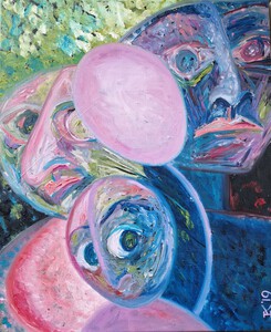 Olieverf op linnen, expressief geschilderd, 60 bij 50 cm., in houten baklijst, Pictoright 2019.