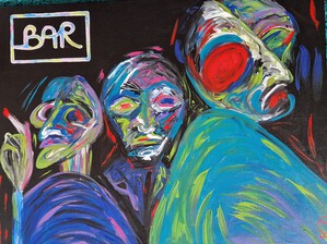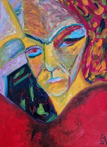 2019Karakterkop, expressief geschilderd, acrylverf op linnen, 50 bij 40 cm, in houten baklijst, Pictoright 2019. De prijs is zonder verzendkosten, als je je aanmeldt voor de nieuwsbrief - linksonder bij 'Communicatie' - krijg je bij aanschaf 10 % korting.