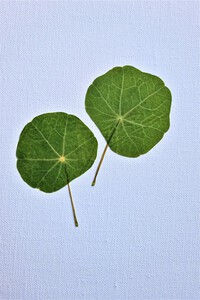 2023Blad van Oost-Indische kers, te bestellen als ansichtkaart, met je eigen tekst erop. Pictoright 2023.