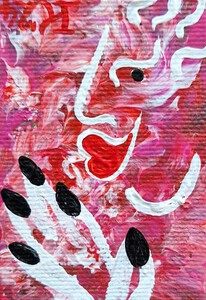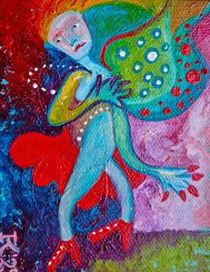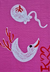 2023Acrylverf op katoen, 5 bij 5 cm, met ophanghaakje, de prijs is inclusief verzendkosten binnen Nederland. Pictoright. Als je je aanmeldt voor mijn gratis maandelijkse nieuwsbrief -zie linksonder, onder ‘contact’- krijg je 20% korting bij aanschaf van dit werk.