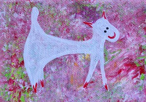 2022Minischilderijtje, 7 bij 7 cm, acrylverf op katoen, met ophanghaakje, Pictoright 2022. De prijs is inclusief verpakking en verzendkosten in Nederland. Als je je aanmeldt voor de nieuwsbrief, zie links onder 'communicatie', krijg je bij aanschaf 10% korting.