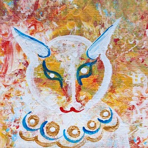 2023Acrylverf op katoen, 10 bij 10 cm, voorzien van haakjes en draad aan de achterkant, zodat je het schilderijtje makkelijk op kunt hangen. Pictoright.